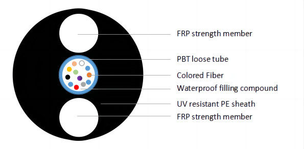 Dwa FRP jako element wzmacniający nałożony na wewnętrzną osłonę, kabel jest zakończony zewnętrzną osłoną PE.