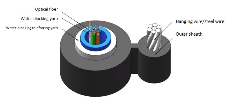 The structure of the optical cable is to insert single-mode or multi-mode optical fibers into a loose tube made of high modulus plastic with water-blocking yarn in a fully dry type and filled with water-blocking material, i umieścić go w środku kabla Wokół luźnej rury umieszczona jest wodoodporna przędza wzmacniająca (takie jak przędza szklana, przędza aramidowa i inne materiały przędzy niemetalowej itp.),a następnie polietylen (lub inne tworzywa sztuczne lub tworzywa sztuczne przeciwzapalneW tym samym czasie do tworzenia kabla dodaje się włókna stalowe lub pojedyncze okrągłe drutki stalowe.