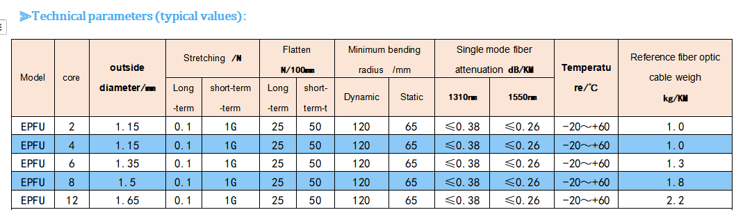 ⫸ Cechy produktu: ① Stabilna struktura o doskonałych właściwościach mechanicznych i termicznych; ② Zoptymalizowana konstrukcja dla optymalnej pojemności włókien; ③ Unikalna kontrola procesu zapobiegająca marszczeniu się osłony i