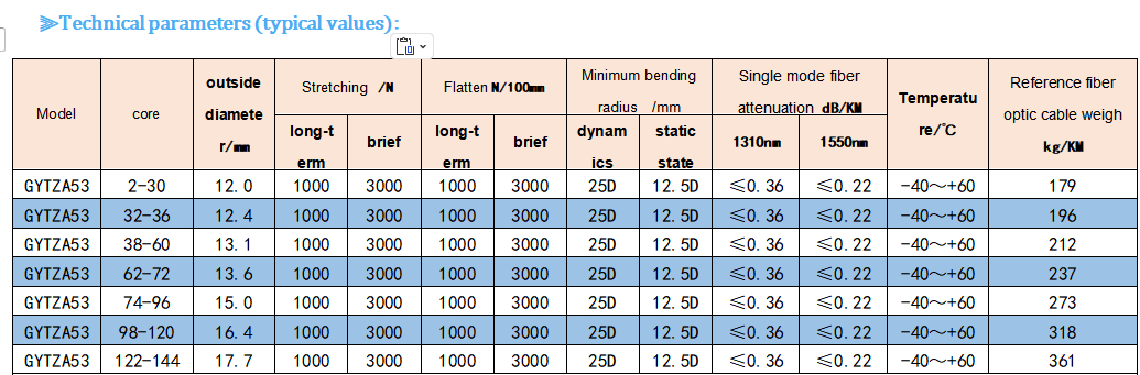 Wykorzystanie urządzeń do przewodu optycznegosprawiają, że kabel optyczny ma doskonałą wydajność mechaniczną i środowiskową; 2 Zewnętrzna część wzmocnienia i wewnętrzna część rdzenia kabla są wypełnione wodopochodną pastą kablową, zapewniającą odporność na wilgoć i wodopochodność kabla optycznego;3 Dwuwarstwowe opakowanie wzdłużne z metalowych taśm i dwuwarstwowa struktura osłony zapewniają silną odporność na rozciąganie i ciśnienie boczne, mają zdolność zapobiegania uszkodzeniom przez gryzoni oraz dobrą odporność na wilgoć;który ma dobry działanie opóźniające płomień i może być stosowany w miejscach o wymaganiach dotyczących opóźniających płomień.